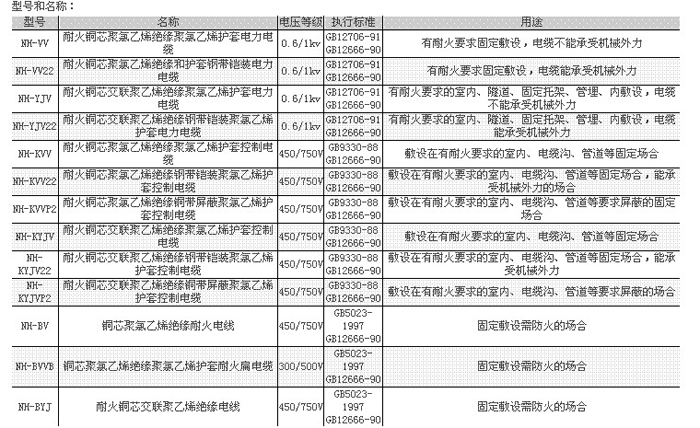NH-BV?NH-BYJ?NH-YJV電力電纜的產(chǎn)品詳細介紹: