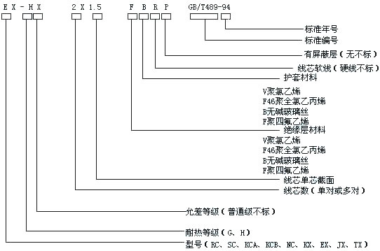b)字母“X”表示延伸型補償導(dǎo)線(型別);