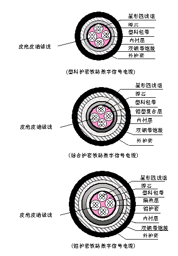 PTYA23 | 聚乙烯絕緣綜合護套鋼帶鎧裝聚乙烯外護套鐵路信號電纜 | ||